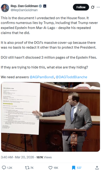 Pro tip (u sure need them): When the guy who actually banned Epstein says out loud “I threw him out because he kept stealing my underage spa girls, including the one who became the most famous accuser,” and the court records back it up, maybe don’t announce “no evidence” like it’s a mic drop. That’s not skepticism; that’s just plugging your ears and yelling “Trump said it so it’s fake!”