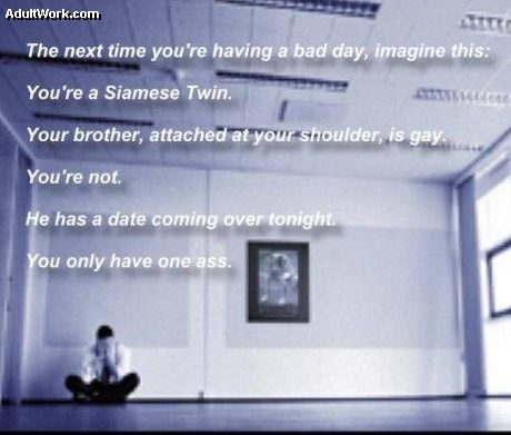 If it makes you feel any better - I lost my job and got run over on the same day. No work, my bike looking like a banana. No severence pay and a repair bill of 24,000 Baht. Since then I have found out who my real friends are, who will help me when I really need it, and some very surprising results. I am about to start a new job in Singapore but can still live in Thailand.