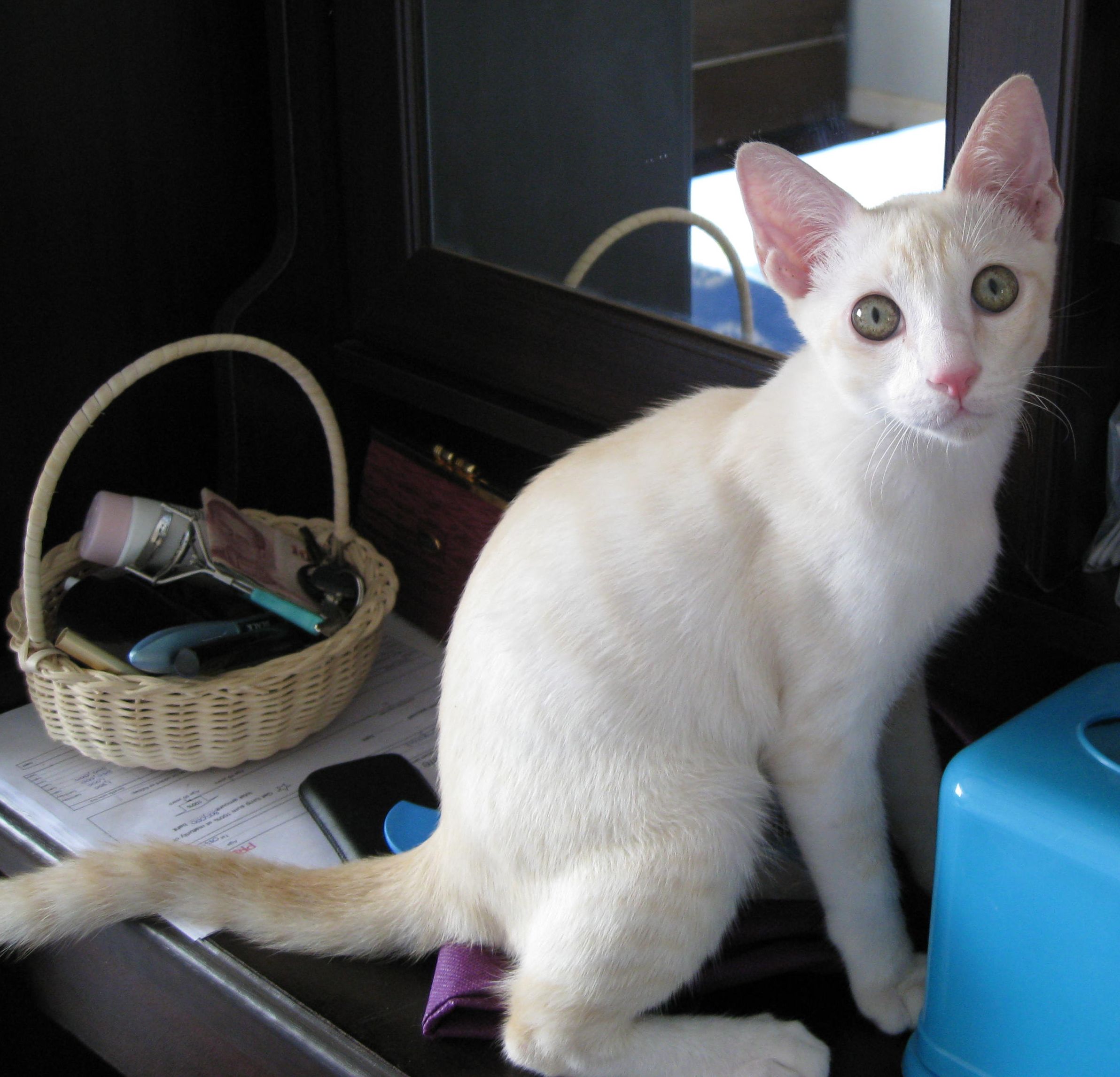 Christian the Cat (the off-white flame point, who came to us shortly after I had watched the now-famous Christian the Lion YouTube vid) and his best buddy, Mango. My better half picked Christian up off the street when he was a mom-less, injured little kit. Mango was a walk-in. Came by one day and just decided to stay (animals are intuitive and know where they are loved).