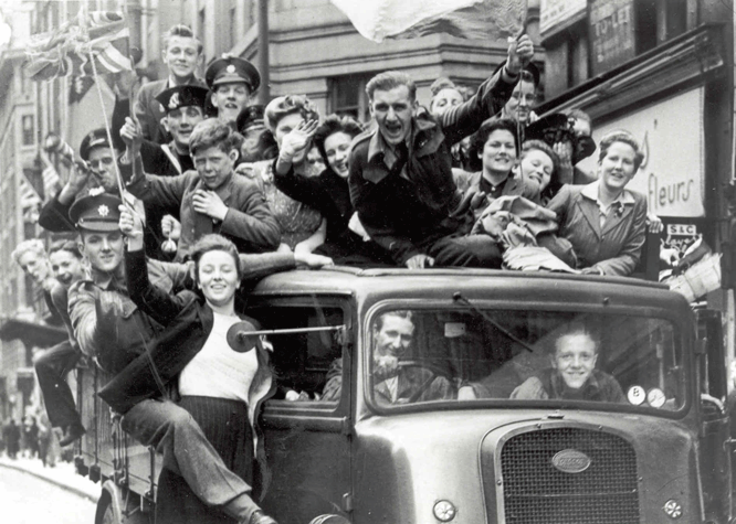 The Prime Minister, Winston Churchill, officially announces the end of the war with Germany
