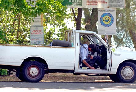 This guy was pictured in the middle of Darwin at 3.30pm yesterday. The keys were in the ignition and he had a stubby (beer) between his legs.