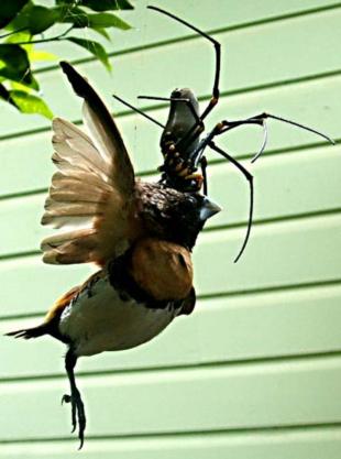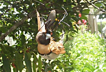 The web is extremely strong and the finch couldn't disentangle itself.