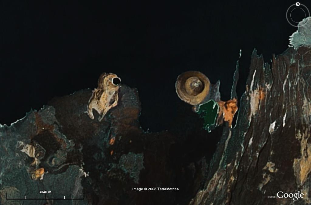 I thought this was an amazing natural feature I found on Google Earth. It looks like a baby bird that has fallen from it's nest (a volcano).