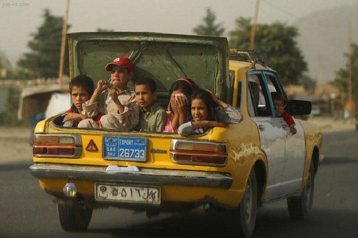 Sharjah number plate - what's he exporting - the family or the taxi?