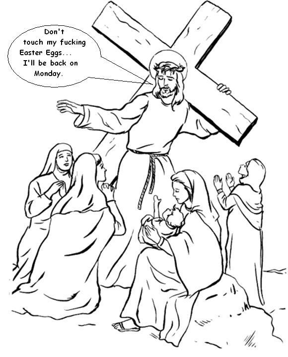The punch-line I heard was 'Don't give my Easter eggs away, I'll be back!'