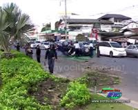 ABout rolling BMWs, I caught this on the road along the Suvarnahum airport. I saw the accident occur in my rear view mirror. That is the car hood that lays by the fallen light pole, the initial impact.
