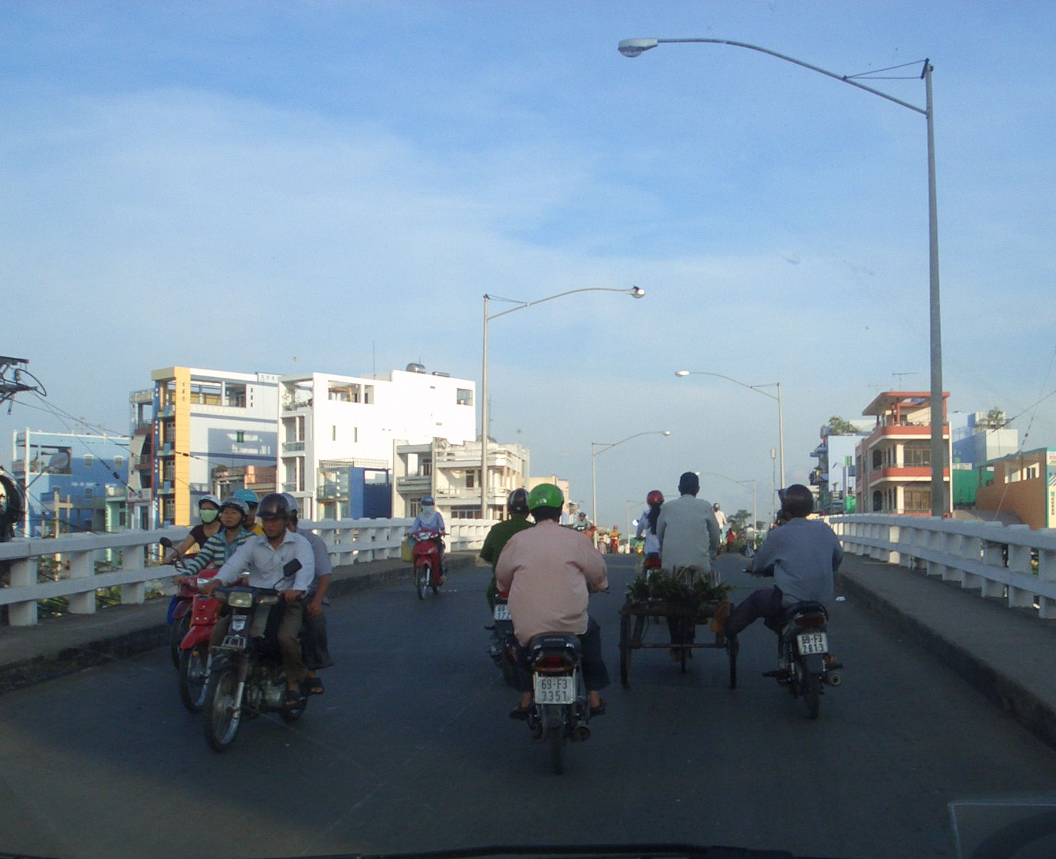 Several of the journey to the office and to site. Notice that all mo'bike riders have at least half-decent crash hats - aspecially as no-one drives over 40 kph (25 mph for those who live in older times)