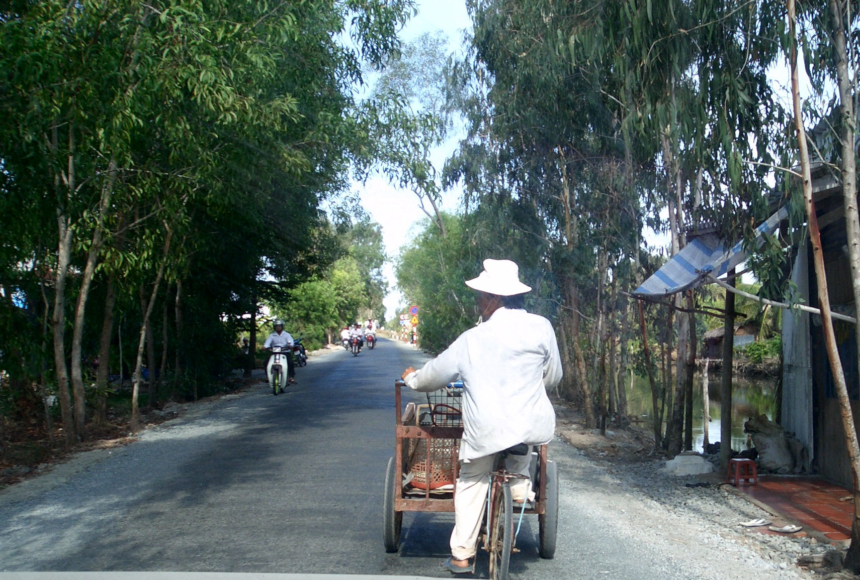 The road between Ca Mau city and the power station is reputedly the only asphalted road in the area. It was built alongside a small river and most of the houses are on the other bank. So .....