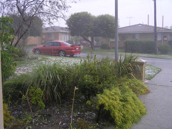 The red Mitsubishi in the first picture is covered in dents from the hail. Probably a writeoff. The owner is quite happy because he was trying to sell it and the agreed insurance price is more than the sale value.