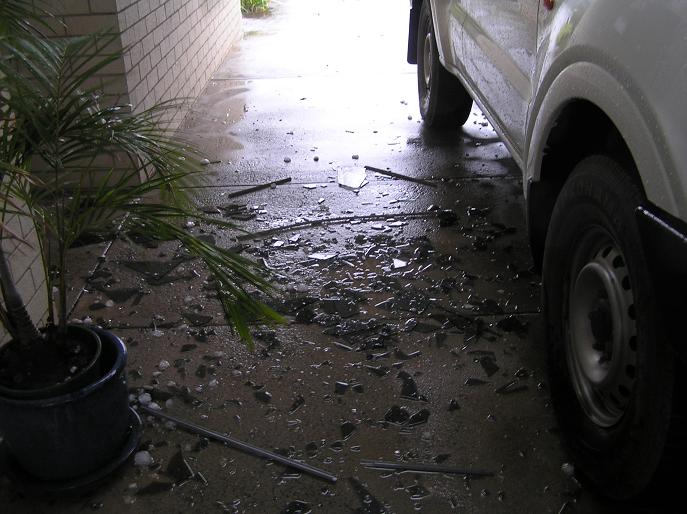 The house was hit by hailstones the size of oranges. I lost five windows and one skylight.