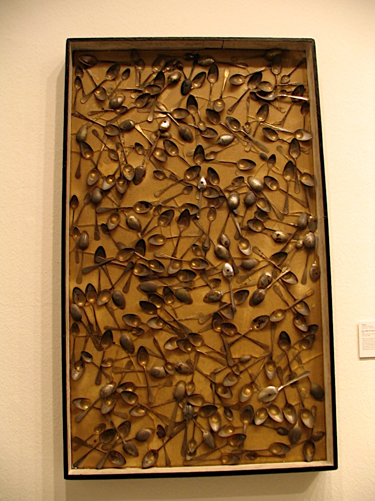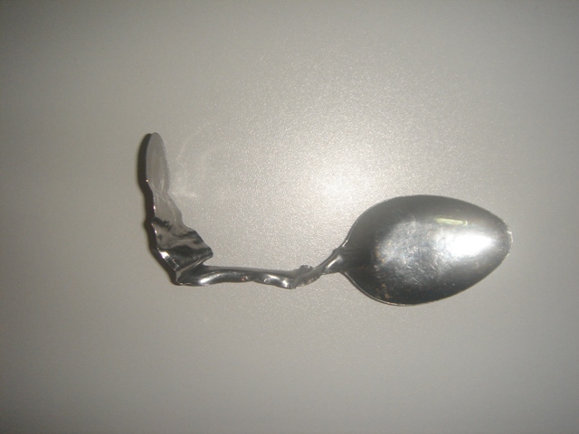 The nonrepresentational object is a bent spoon that somewhat reflects the twisted world we're living in by the renowned artist Raro d'Abuse, a scholar of French not-so-much-impressionist Duchamp. The title of the work is "OHHHH" as it somewhat resembles the Thai character sala ohhhh. Twist yer head an ya might get it.