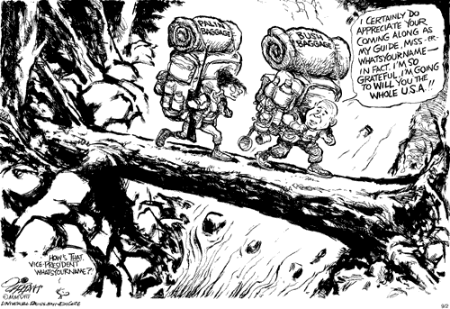 The task was to find someone who would withstand public scrutiny and some clown said, "she's from Alaska, what could she get up to there?"