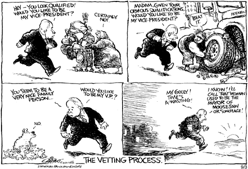 My observations of Republican politics is that they enjoy nominating the least experienced person for the job. Nowhere better shown than George W. Bush and Sarah Palin. She is not half as qualified as Jimmy Carter was in 1976. And unlike the nice Thai teachers here, she only looks good, but has a mean streak.