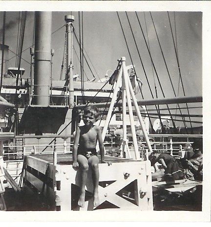 Here I am on the Strathaird. Cheeky little Pom. (1954, aged 5, we must be the same age Endure).