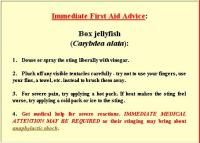 - pour vinegar over tentacles. Urine does not work on the Box Jelly or Irukandji.