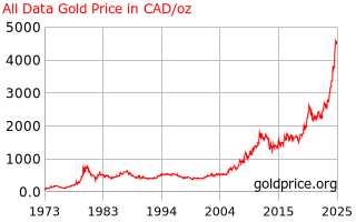 Here is the historical gold price including the period referred to: 1983-2004 followed by the Canadian inflation rate.