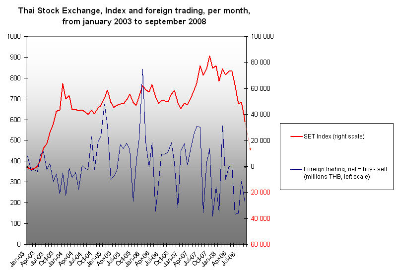 The econmic problem for Thailand is going to be living with others mistakes. Slower FDI, less tourists, relatively strong baht. 2009 is not going to be fun economically, but other developed countries will suffer more