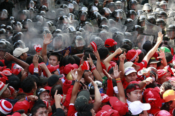 Everyone should know that the reds protest according to the Constitution Law. Even though we don't agree with this law issued after the Army robbed our government, we still base on that to act. The reds announce in advance what they will talk about, where they will gather and what time. They don't have weapons with them. After the protest, they come home. They don't sleep in Government House (3 months) and airports (8 days) like what the PAD did.