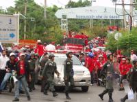 Getting back to the original post, news reports indicate that an unmarked car carrying PM Abhisit was stopped at the Pattaya Tai/ 3rd Rd. intersection when it was attacked by a group of red shirts. The rear window was broken and an attempt was made to drag the driver from the car.