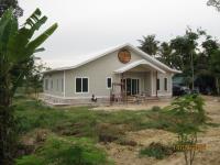 I am presently in Albuquerque, New Mexico and the local wat was built using the all white steel construction. The building was a modified Thai Wat style with the steep roof line.