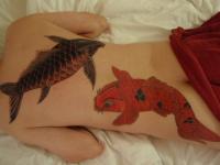 My wife like many Thai ladies has a scar on the calf of her leg from a motorcycle exhaust pipe. She considered getting a tattoo to cover it but changed her mind so she has none.