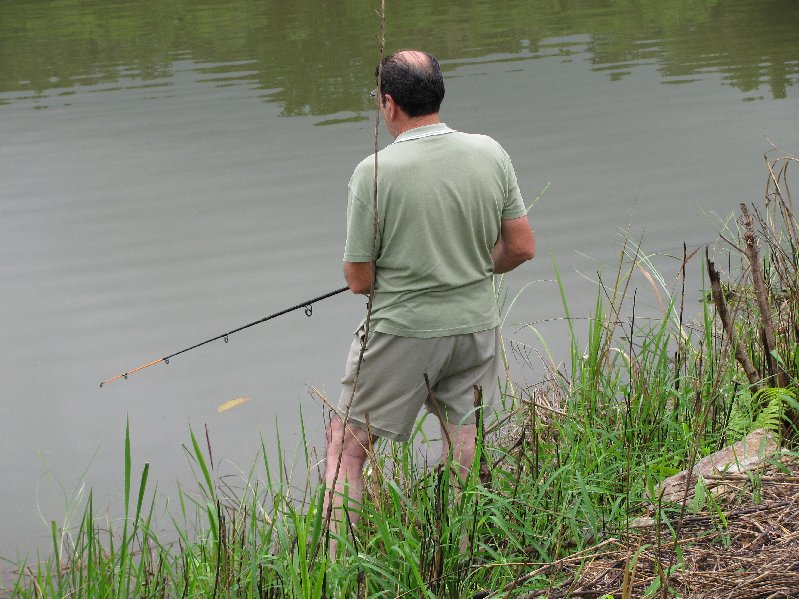 By coincidence a mate stayed with me last week and he brought up a spinning rod and reel I left at his house years ago. We bought a 40 baht lure at Mae Sai and took it out to a local lake and tossed it around. On two occasions something largish came up and took a look at it.