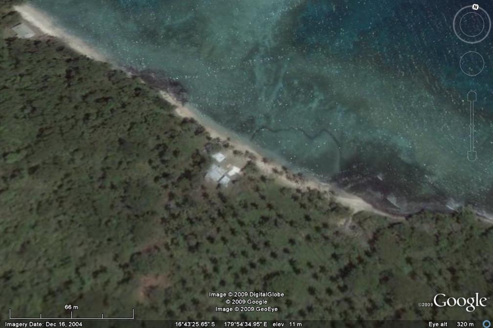 If you go to Google Earth, 16 deg 43 minutes 25.74 seconds South, 179 deg 54 min 35 sec East, and hover about 500 feet, you will see Narewa Estate, our property back then, next door to Sau Estate. Notice a black line going out from the beach in a rough semi-circle: that is a stone wall fish trap. It is made to be covered by a couple of feet of water at high tide and encircles a few shallow rock pools at low tide. The idea is that fish swim over it at high tide and are then trapped in very shallow water at low tide. The low tide level of the pools is enough to sustain any fish trapped, but makes for easy catching if you decide to check if there is anything in there. More often than not, there is nothing worthy trapped, but occassionaly there will be a very decent fish, and a few times I have had the pleasure of pillaging sacks of parrot fish. We also used to transfer giant clams there if we found them out on the reef so that they were handy whenever we felt like having one.
