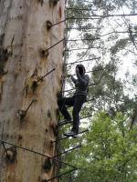 Cut steps in the trunk. You do have to treat the tree with rspect and care, so the steps should be minimum depthl just enough to get a small foothold.