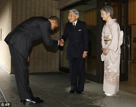 Barack Obama bows (DEEP!) to Japan's Emperor Akihito