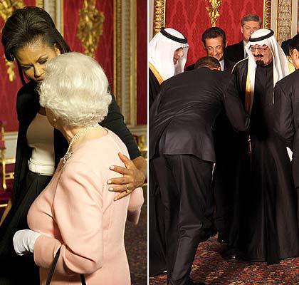 IMO Obama's staff should inform the President and his wife a little better when to bow and when not to bow or put hands or hug on shoulders.