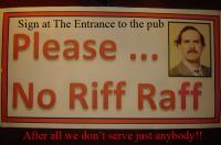 I think you'll find the no riff raff sign is a bit of a joke on the owners part I don't believe he has ever ejected anyone from his pub for the way they look, if he had I'm sure he would have had started a big discussion about it here :)