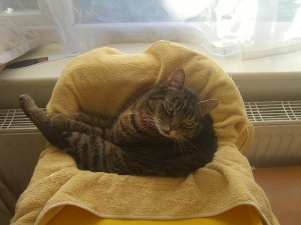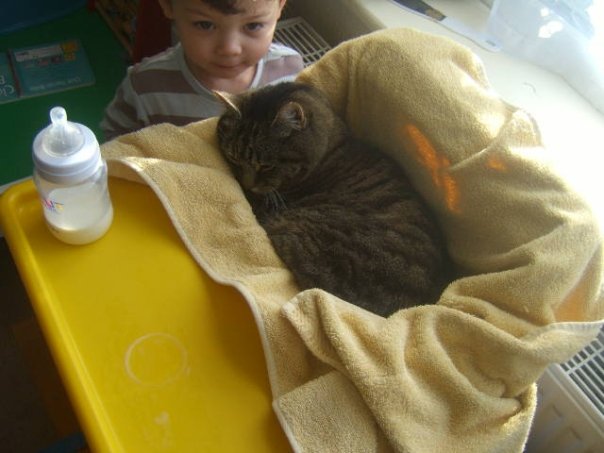 When my son was little Frank loved nothing more than curling up in his dinner seat. He is one strange cat.