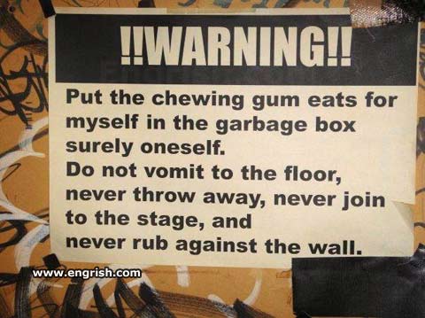 Edit: I have to say, this kind of thing does have me scratching my head a bit. I see these billboards, menus, etc, made up. Some of them obviously at some expense (particularly the large billboards, that im sure cost quite a lot for design and printing and renting the space to display it etc). Beautifully done, invested in, and then ...spelling mistakes, and/or terrible grammar, and/or really bad translations. I think to myself, why, after all that work and time and investment, do they not have someone double check the English? Is it really so hard to find someone to let them know its ok or not? Or, is it really a case of, its good enough, just leave as is, even though i spent a small fortune on it? :D