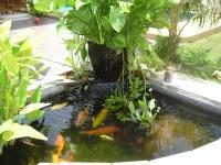 February 15, 201016 yr Author Dave's quote "Used to call these 'water hyacynths' I think ?? and I am not convinced 'Pla Nin' are That effective against green water, in my experience.Shade and Correct filtration are probably the answer." To add my "two bits" worth on this subject! Water hyacinths are a bit different than the picture shown, & have a white & blue/ purple flower.... different leaves! ... but both these plants multiply like wind fire! But more on the subject, I have a pond in full sun, my land-lady has one in pretty much full shade, she cleans hers at least every two weeks, & uses a small pump that only trickles water.... I've cleaned mine once in 6 months & that was because of dirty well water when topping it up. More important is good AERATION of the water, if you can find a filtration system that would help too, but I have not seen here... although not looked too hard, either... I have a fairly heavy duty pump, attached to 1.5 inch pipe. which I have on a timer coming on for about one hour a day, with three fountains, which seems to be enough to keep the water clear... in full sun all day! Of course having a bigger pump means separating it from sucking up the fish! But when I designed the pond we made three separate areas, one for just the pump... This could be achieved with a filtration box, too Another way would be to add a waterfall, but again a larger pump would be required... No air in water equals stagnant water! Hope this helps! Thanks Jimmy, but I have a 3-well, canal-type fliter system with lava rocks, etc. and a large pump on a timer that feeds 2, nearly 2 meter high water falls. The waterfalls run 4 times a day for an hour each time but the water keeps getting greener and greener. As I mentioned earlier, out of 31 "Pla Nin", only 4 are still alive and I doubt they will have any impact at all. This past weekend I added 22 "water lettuce" plants to the pond, so I guess I will wait to see whether this has any impact. I really don't know what else to do at this point. The front pond, which gets partial sun all day remains clear and virtually maintenance free.