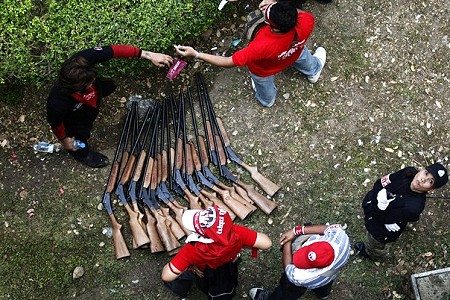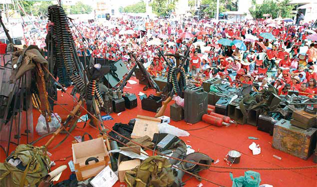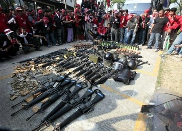 Of the 500 Israeli-made Tavor Tar-21 assault rifles seized by the protesters, only 200 were returned to the Army. Some M16s, had returned. The protesters also have M67 grenades, M79 grenade launchers and rocket-propelled grenade launchers. They also seized many assault rifles from the military during the clashes with security forces on April 10 at Khok Wua intersection, the sources said.