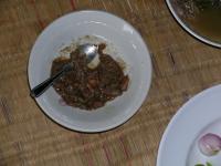 I've had pig, duck, cow, and human blood. Blood isn't that bad unless you have too much fresh blood instead of the congealed or coagulated stuff. It shows when you go to the bathroom later... The maid (Burmese) cooks some god awful stuff sometimes for herself. It's like fermented something and it stinks up the whole house for a day or two.