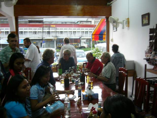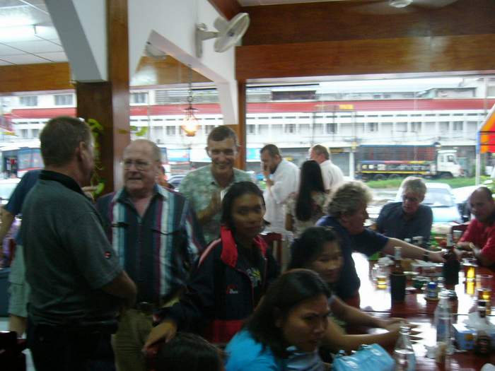 A good time was had by all. Shame we couldn't share it with you. But even all the web-cam experts of "Thai Visa" couldn't fix it. Although I must say the bloody web-cam slipped from everybodies mind when Uncle George rang the bell to signal the stampede for three hours free beer. And believe it or not,this modest motley bunch of occaisional drinkers from TV and the wilds of Surin, managed 10,000 bahts worth of beer in that short time. Eventually though we managed to seperate " George" and * Chang* around midnight, and so to bed.