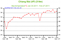 However, the hot weather seemed a lot longer coming than previous years. I usually arrives in early February. I still don't feel the need to put on the air-con. Last night was the first time since November that I didn't want a blanket on the bed at night.. In Mae Sai 3 days ago it was very cool in the evening