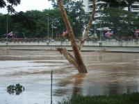I went out on my bicycle to check out the floods this morning. There are rapids on Charoen Rat Rd. (along the east bank of the river) from the Gymkhana club to the electric company!