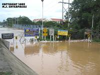 water in some areas is over a metre deep. The incoming highway to Chaing mai is closed with all traffic diverted into the outgoing lane. Happy to say there are loads of Thais with their trousers rolled up happily helping the stranded cars to get out or push them through, even the police are doing their job with theor shoes off and trousers rolled up!