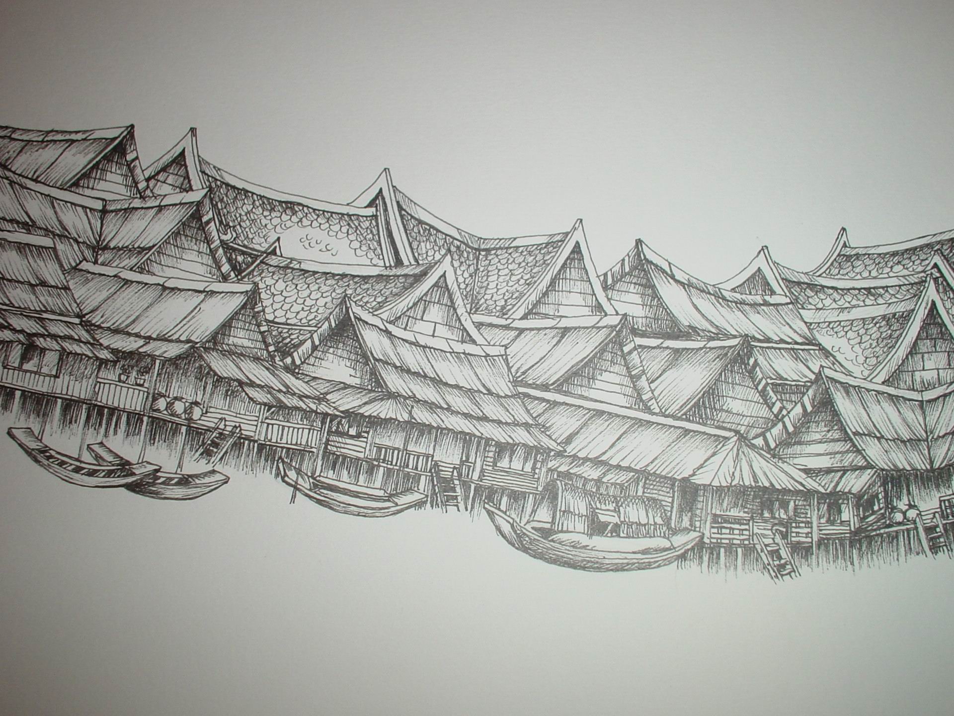 Perhaps it depends on the level of detail. The riverbank penwork he must have done with a magnifying glass, ditto for Krabi, maybe my digi camera doesn't show the detail.