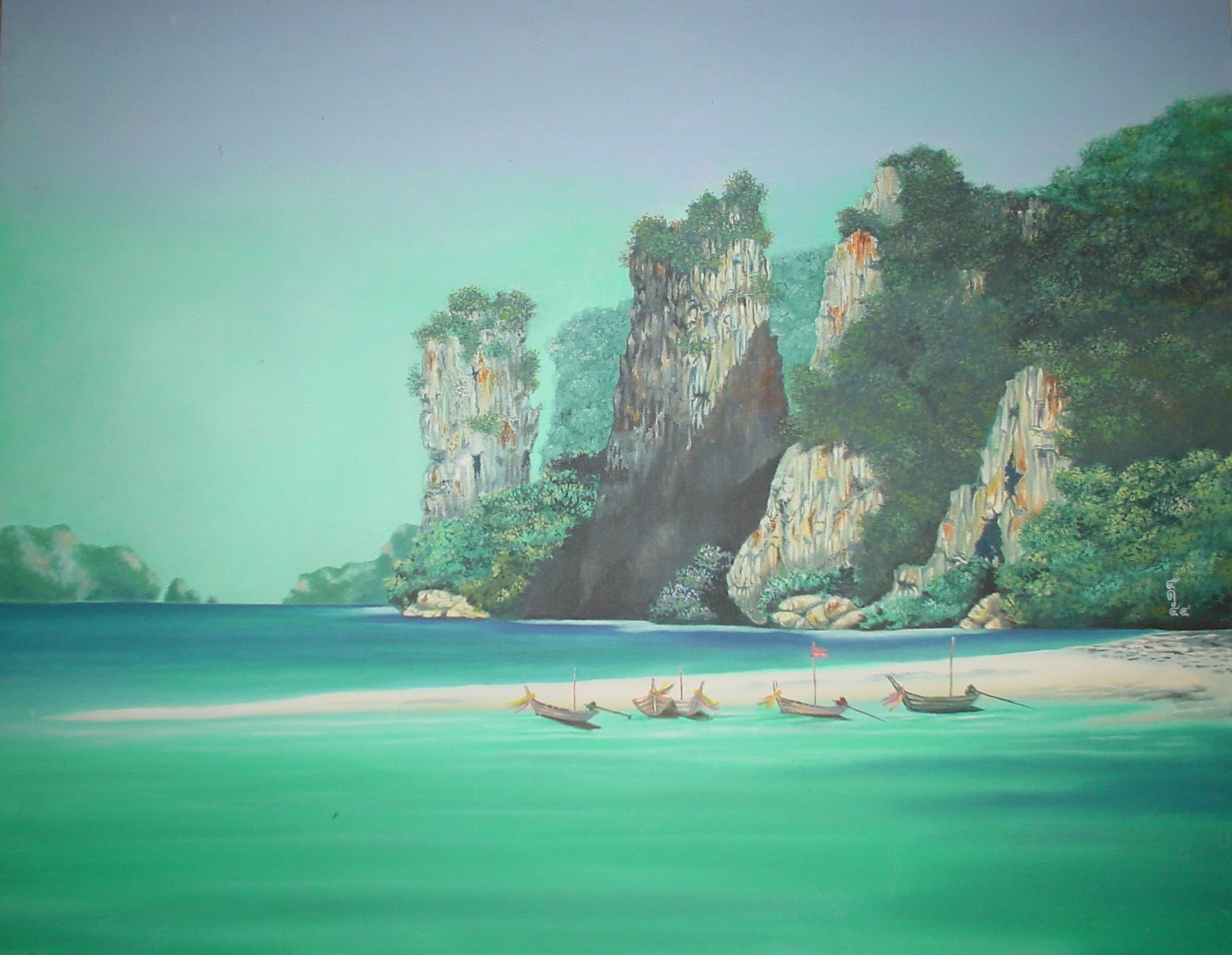 This is an oil painting of the limestone pinnacles of Krabi that hangs in our hall.