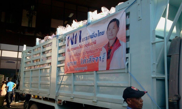 An interesting part of the government's strategy is the Ministry of Public Health's initiative to distribute emergency medicine kits (presumably containing paracetamol and lipo) to flood victims with a sticker on the box advertising the names of Pheua Thai MPs, presumably to give the impressive that it came from the party or the boss himself. I have heard that food parcels with similar stickers are also being distributed.
