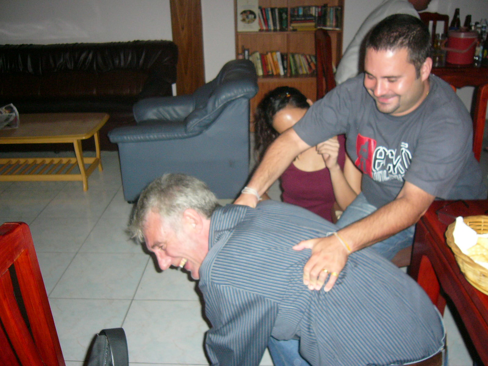 Our Totser was the latest to be carried drunk from the Farang Connection, after just half an evening of festivities. His wife (who is about 1/10th the size of him),
