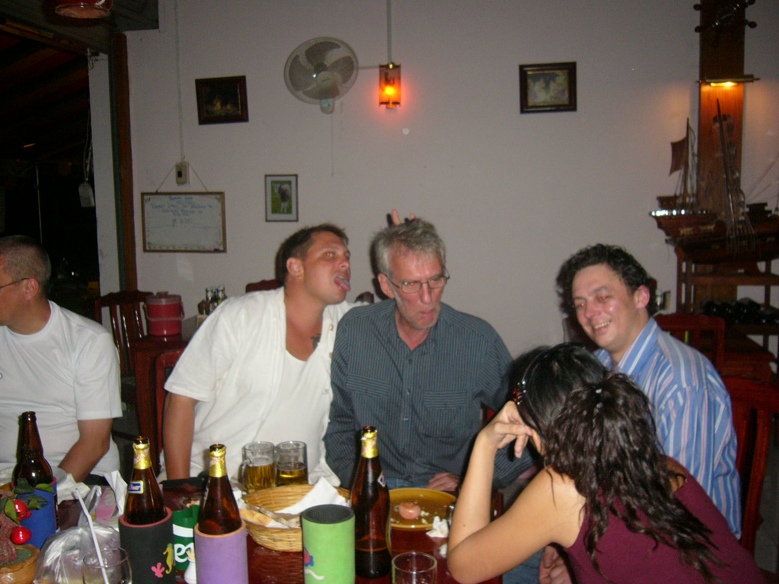 Our Totser was the latest to be carried drunk from the Farang Connection, after just half an evening of festivities. His wife (who is about 1/10th the size of him), was last seen supporting him on the road back to the hotel.