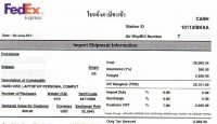 Total paid to fedex for VAT, Duty and clearance charge on delivery: THB3940.00.