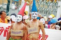 June 7, 201312 yr They look like they are copying the Anonymous Hacker group, who have organized protest events over the years using websites and social media. They have been featured on a number of television news interest stories recently. They are noted for using Guy Fawkes of masks to protect their identity. They are well known for their protests against the Church of Scientology and organizing a world wide protest via the internet. http://news.cnet.com/8301-10789_3-9857666-57.html http://www.google.co.th/imgres?sa=X&biw=1600&bih=726&tbm=isch&tbnid=zWQ7McKDseWEMM:&imgrefurl=http://www.demotix.com/news/223346/hamburg-protest-against-church-scientology&docid=C9jbrWKdkeQiDM&imgurl=http://static1.demotix.com/sites/default/files/imagecache/a_scale_large/200-5/photos/1263694601-hamburg-protest-against-church-of-scientology223335_223335.jpg&w=800&h=533&ei=0VKxUb6bDfGZiQf0s4CYCg&zoom=1&ved=1t:3588,r:45,s:0,i:224&iact=rc&dur=540&page=3&tbnh=179&tbnw=269&start=44&ndsp=27&tx=134&ty=95 When attending a protest they suggest: Face Coverings A Guy Fawkes mask is the traditional Anon face covering, and it's a good one. Before buying a mask to protest in, though, check your local ordinance and consult your local cell—in some locations masks are not permitted. If you don’t have a mask, can’t wear one because of local laws or don’t want to wear one, any face covering will do: theatrical masks, surgical or dust mask, scarves or bandannas, face paint and veils are good alternatives.To find a Guy Fawkes mask, ask your local cell or check out online vendors: Amazon.com Ebay Forbidden Planet Buy masks from a critic Vendetta Mask - Masks - Costume Accessories - Halloween Costumes - Party City Or, make your own: Kimpix » Guy Fawkes Papercraft Mask https://whyweprotest.net/community/threads/read-this-first-scientology-activism-general-information.67664/ Par for course to borrow an idea or concept from elsewhere ... certainly not original. Original would have been to use traditional Thai masks.