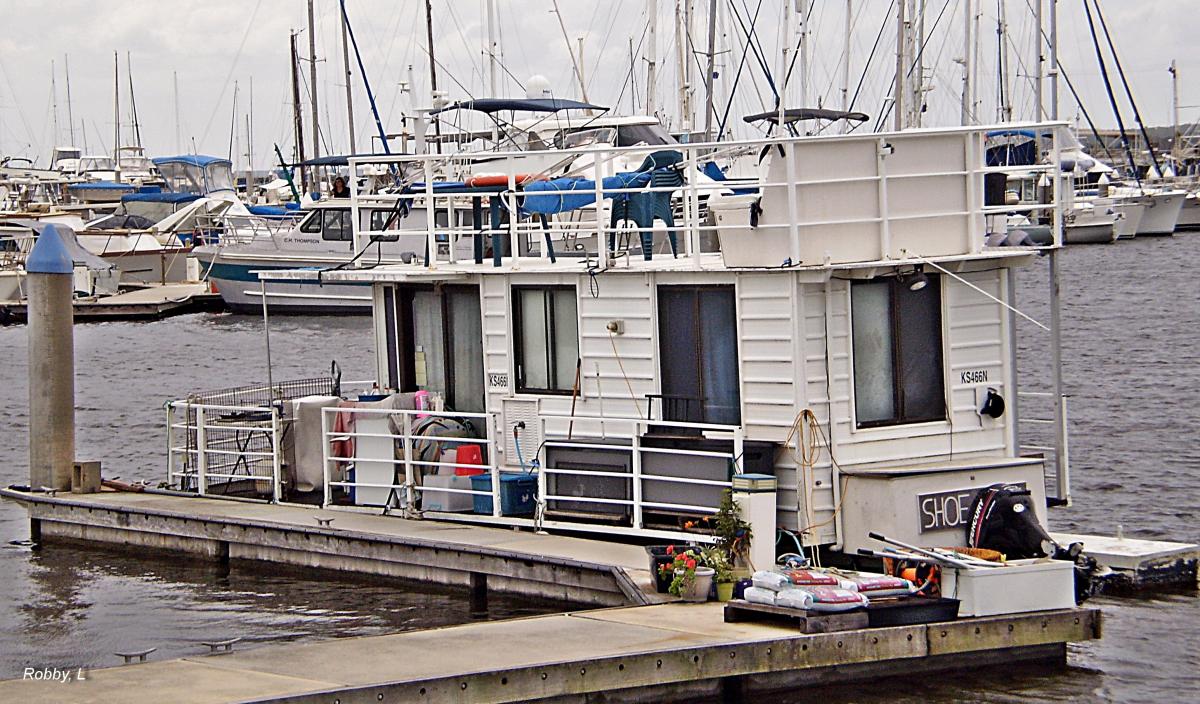 Boat house or house boat, even has flowers.