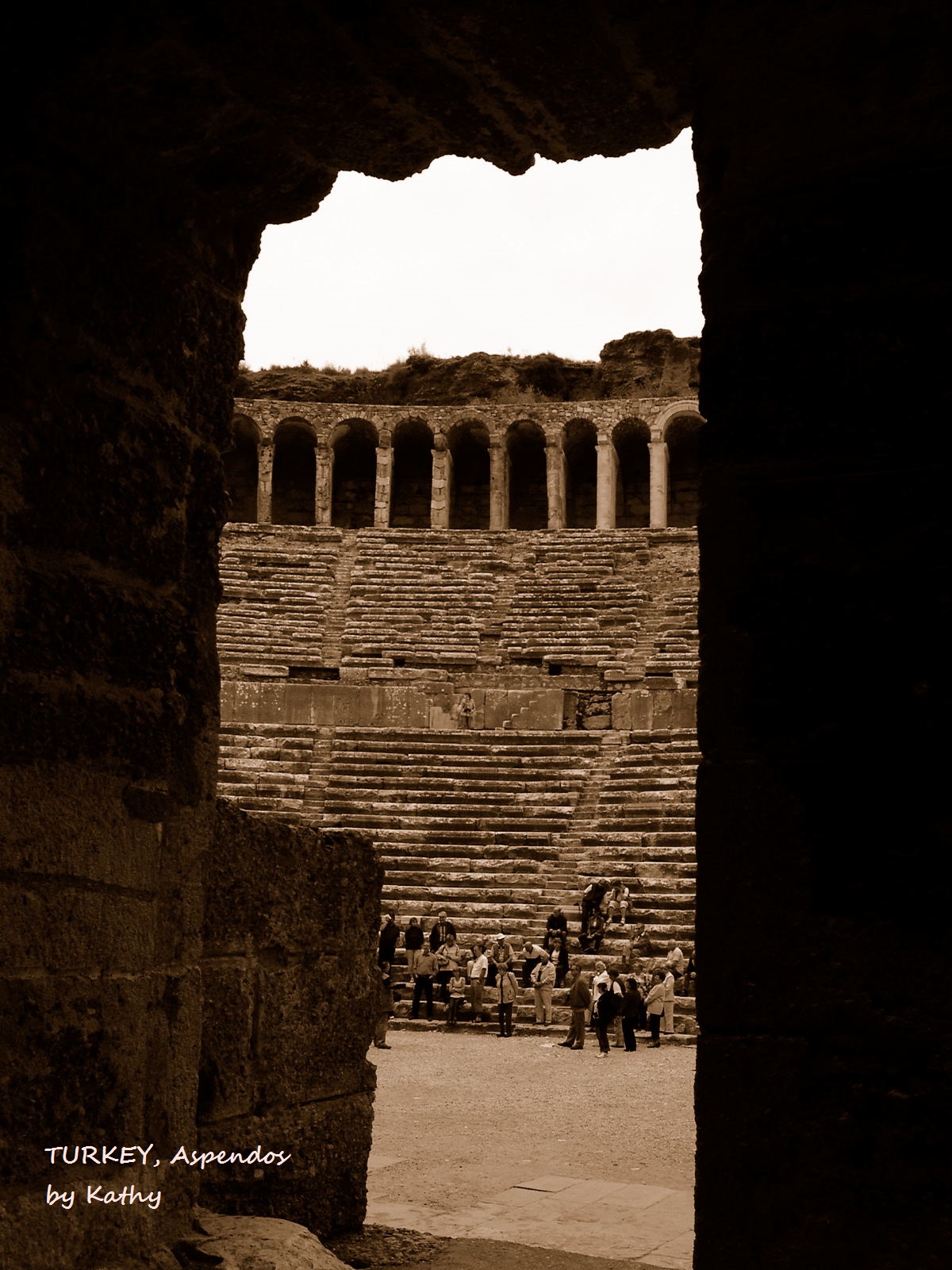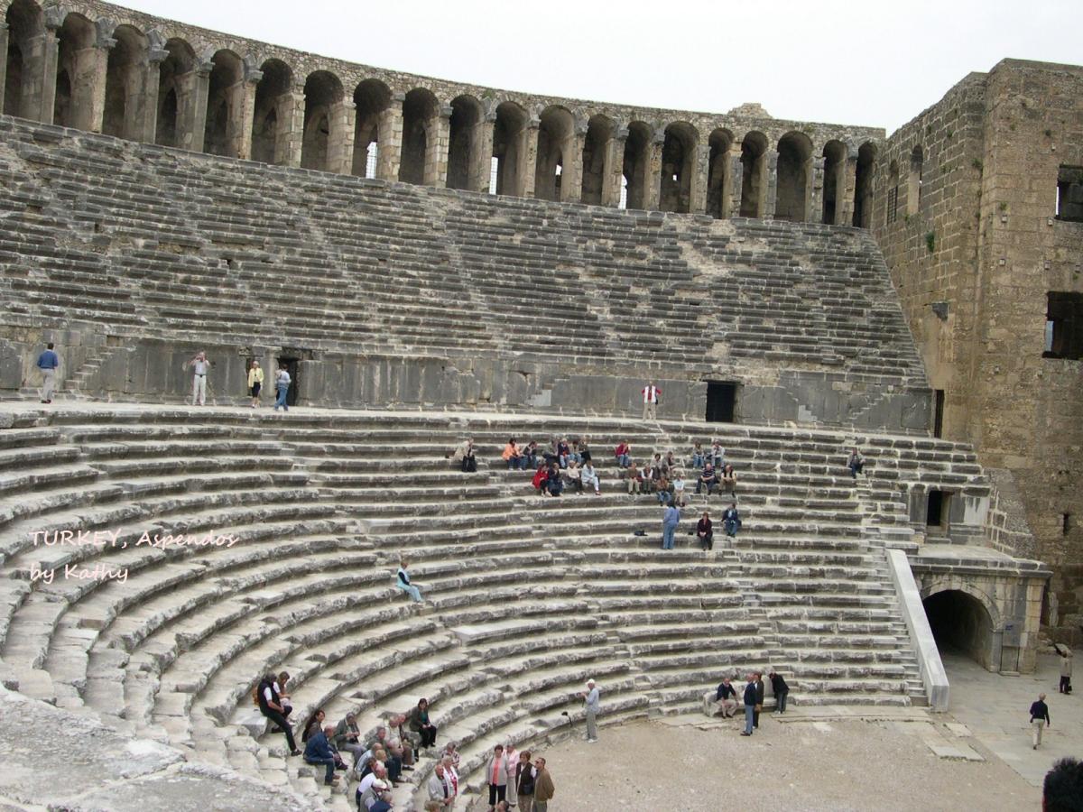 Aspendos was an ancient city in Pamphylia, Asia Minor, located about 40 km east of the modern city of Antalya, Turkey. It was situated on the Eurymedon River about 16 km inland from the Mediterranean Sea; it shared a border with, and was hostile to, Side.[2] According to later tradition, the city was founded around 1000 BC by Greeks who may have come from Argos.