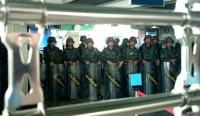 There are a few hundred motorcycle taxi drivers waving red flags on Lad Prao under the Ramintra-Ekkamai Hwy. Traffic is moving but very slow in both directions